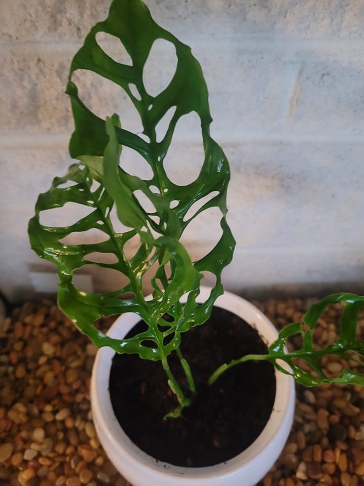 Thom's Variegated Plant Shop Esta planta en realidad no es una Monstera, pero comparte un gran parecido con la planta Monstera deliciosa. Es originaria del sur de Tailandia y Malasia y tiene hermosos ventanales. Pertenece al género Rhaphidophora y forma parte de la familia de plantas con flores Araceae. Es la variedad abigarrada de mini monstera la que es rara, ya que produce hojas verdes abigarradas de color amarillo o lechoso.- Nombre botánico: Rhaphidophora tetrasperma variegata