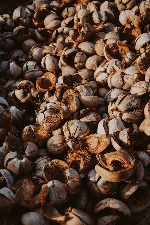 - de la corteza seca de cocoteros,